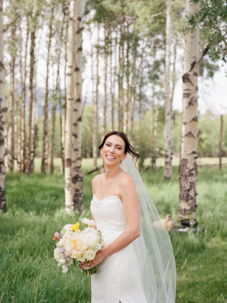 Clare and Andrew’s wedding at Snake River Ranch in Jackson Hole, Wyoming was a dream from start to finish, with their ceremony set in the iconic Aspen Grove and portraits throughout the stunning Johnson 40 meadow. Planned beautifully by Wild Rose JH with catering by Provisions, this celebration became a major milestone for my studio: my first wedding photographed and filmed by a four-person team, combining medium format film, 35mm film, and digital into one cohesive story. For couples searching for Snake River Ranch weddings, Jackson Hole wedding photography, or hybrid film + digital coverage, this day is the perfect example of how multiple formats and a skilled team can bring a wedding story to life.