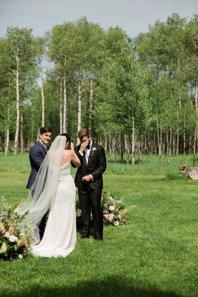 The setting couldn’t have been more iconic: the Johnson 40 field, that wide-open Wyoming sky, and the ceremony tucked inside the Aspen Grove — one of my favorite pockets of Snake River Ranch. Add in planning by Ashley from Wild Rose JH and catering + late night eats by Provisions, and it was the kind of day that just flowed effortlessly.