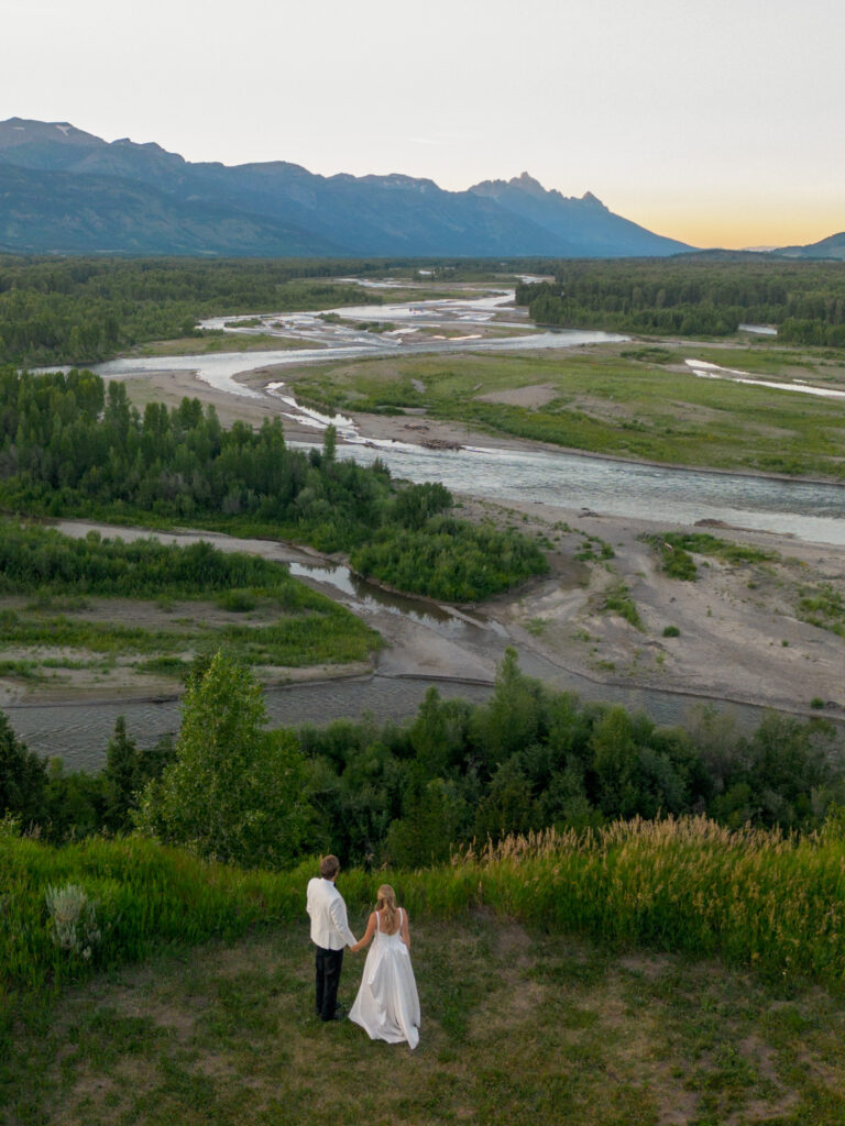 Drone imagery was essential here, not as an extra, but as the only way to truly convey the size, scale, and wild openness of the landscape. It’s what shows, unmistakably, why Jackson Hole is such a powerful place to get married.